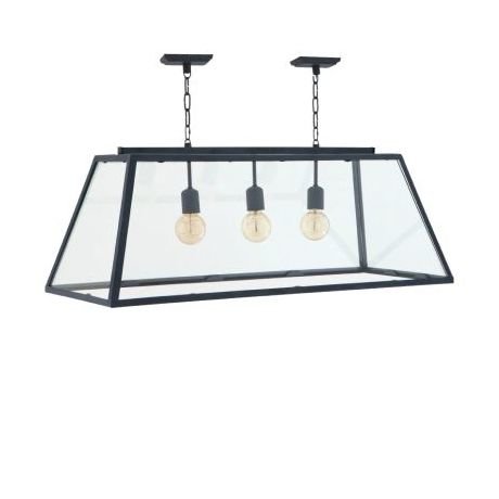 Светильник подвесной, металлическое основание, цвет состаренный цинк, прозрачное стекло. Размер 100 см x 38 см x 36 см. Патрон E14, мощность max 3 x 60W.